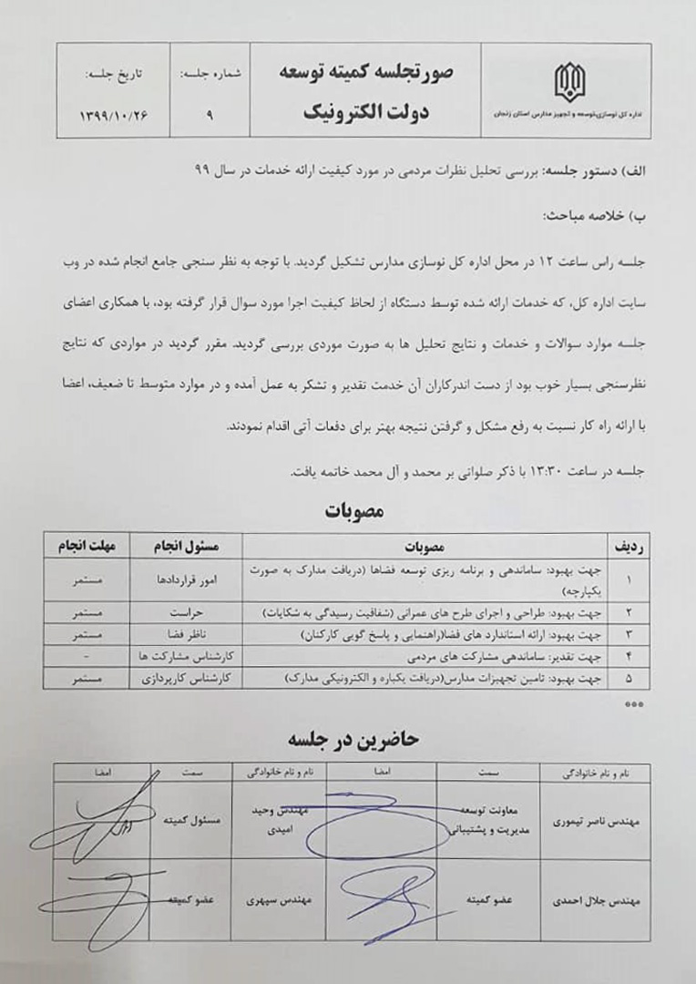 تحلیل نظرات مردمی خدمات دستگاه تحلیل نظرات مردمی خدمات دستگاه اداره کل نوسازی،توسعه و تجهیزات مدارس استان زنجان